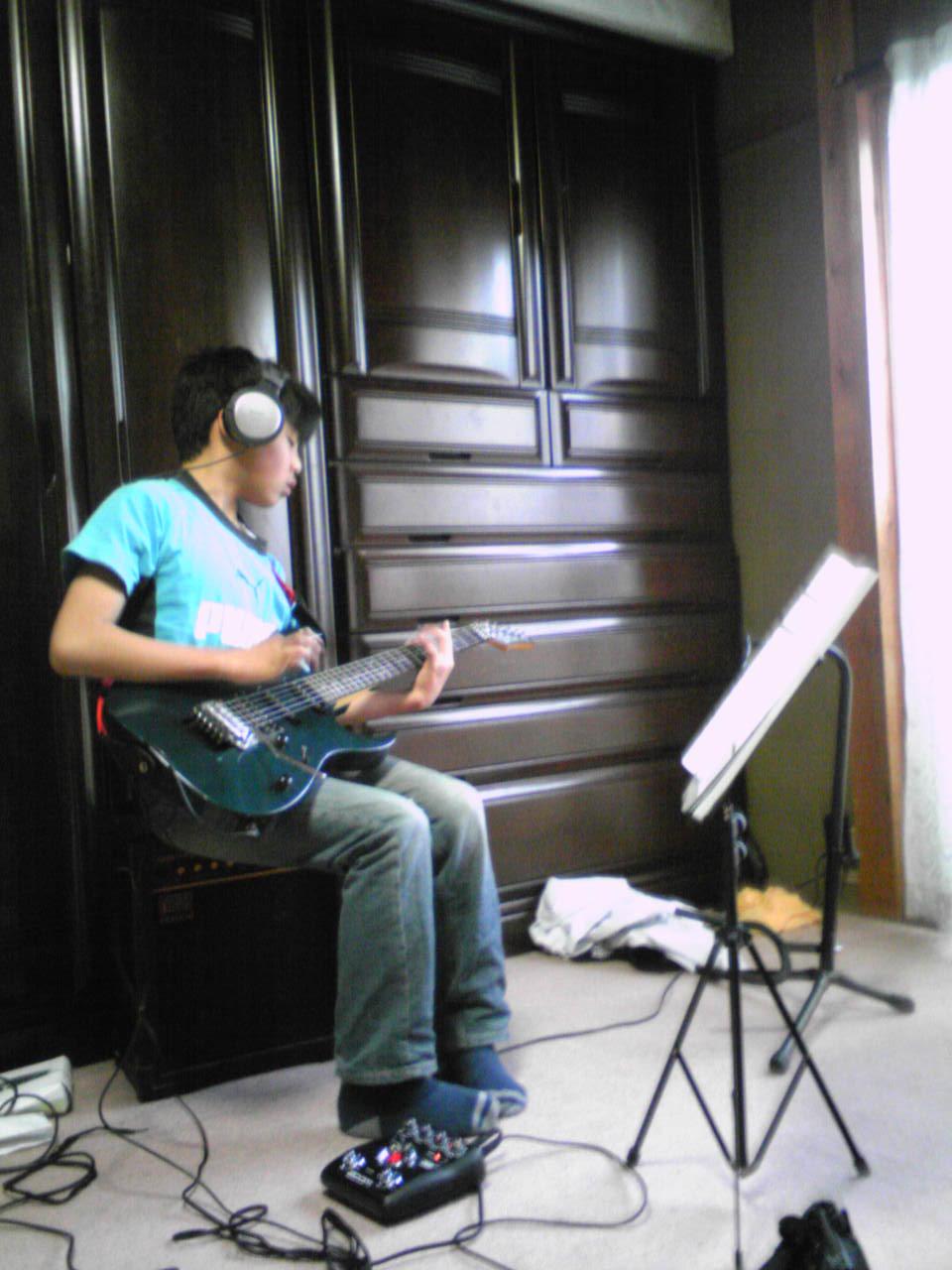 最近、前に骨折した息子もギターに興味を持ち、練習してます(笑)